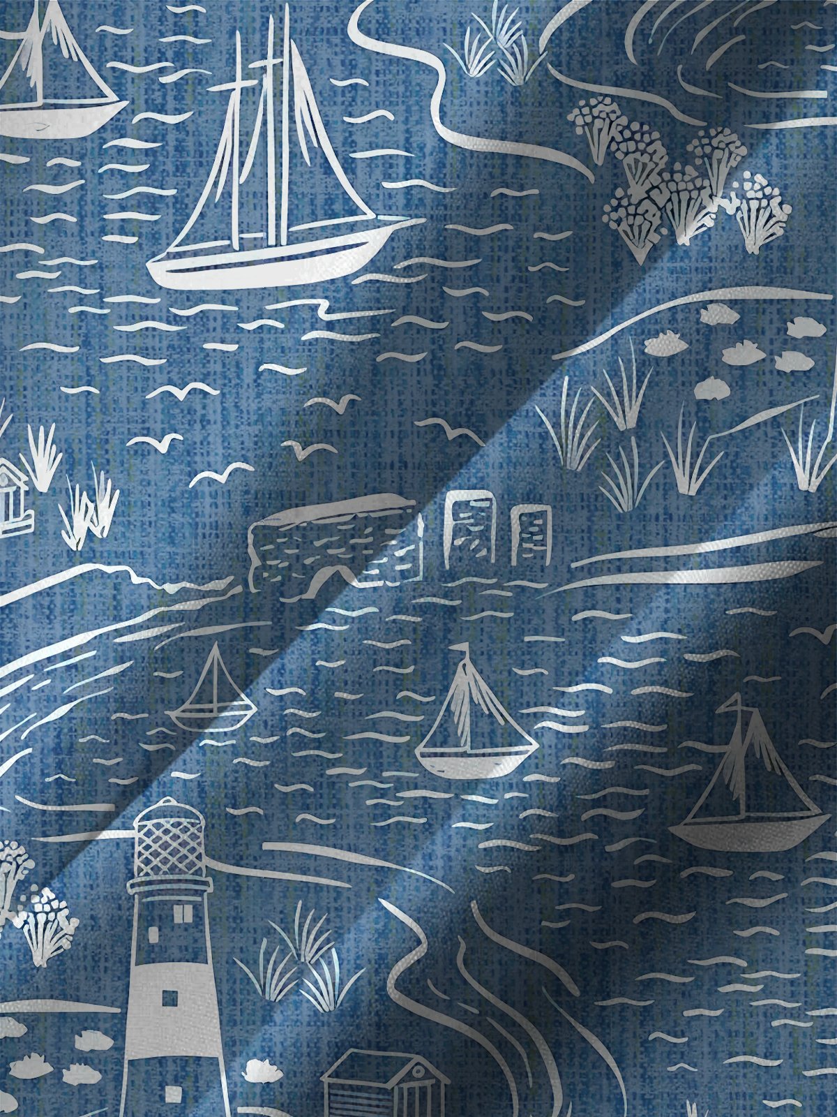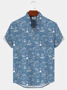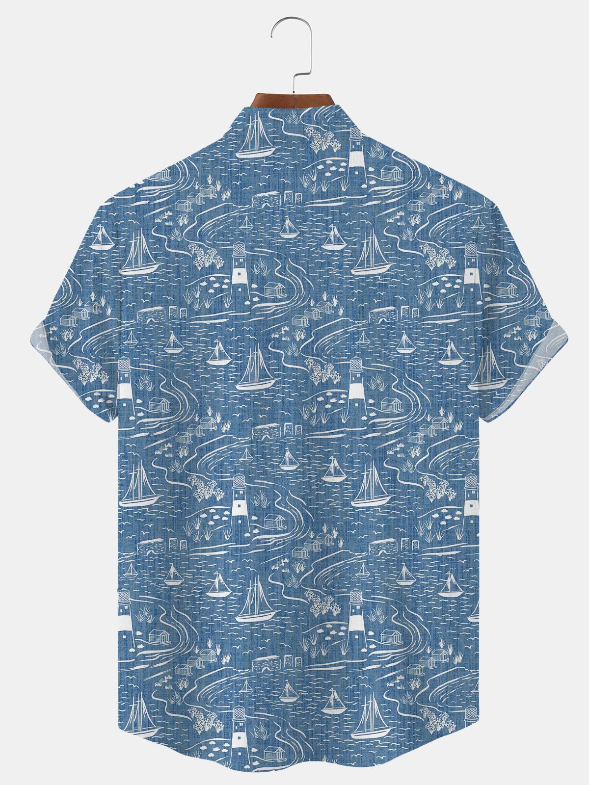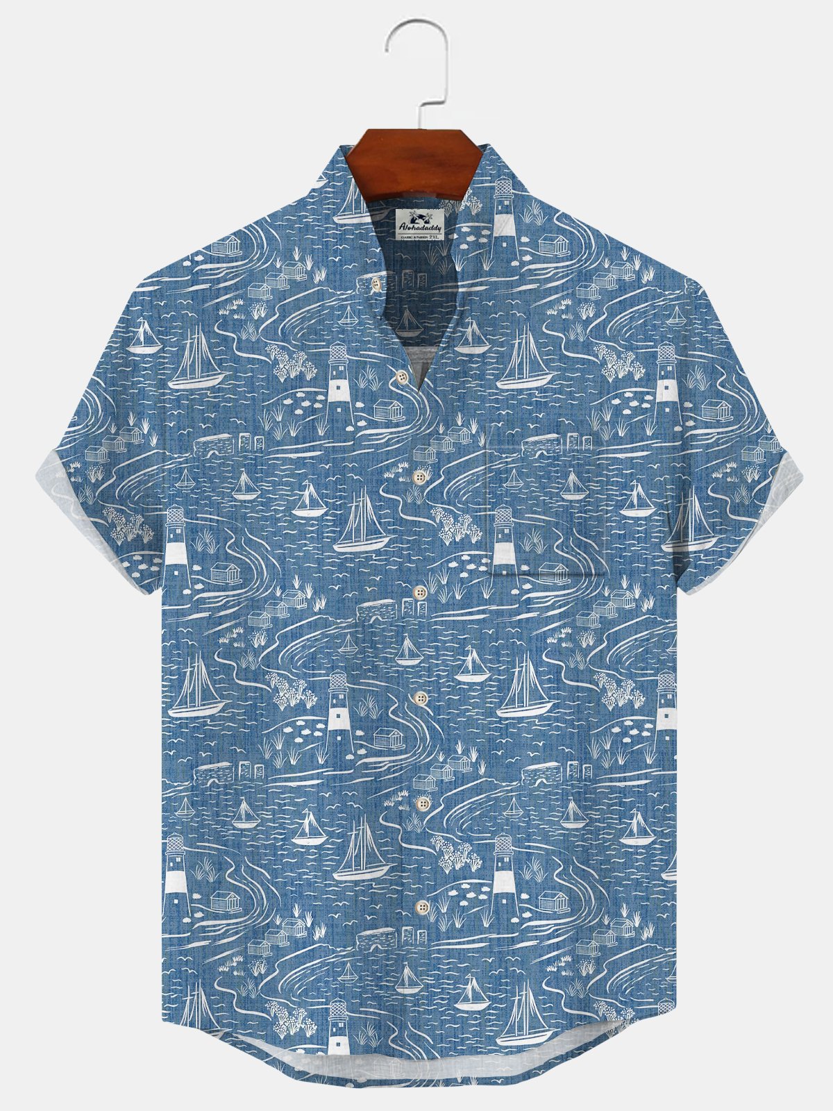 Alohadaddy Coconut Ocean Sailboat Button Pocket Casual Short Sleeve Stand Collar Shirt
