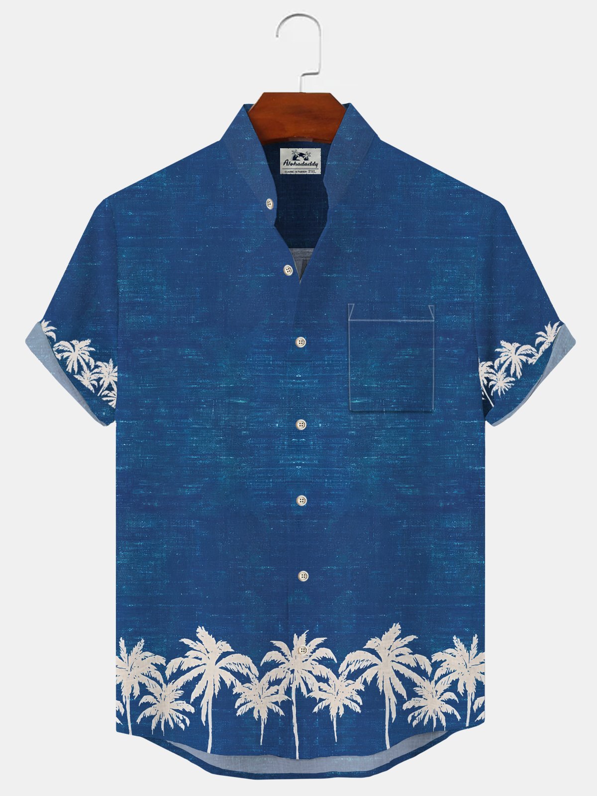 Alohadaddy Coconut Tree Button Pocket Casual Short Sleeve Shirt