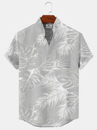 Alohadaddy Coconut Tree Plant Button Pocket Casual Short Sleeve Stand Collar Shirt