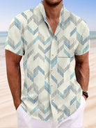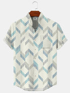 Alohadaddy Geometric Button Pocket Casual Short Sleeve Stand Collar Shirt