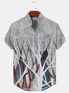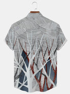 Alohadaddy Geometric Pattern Button Pocket Casual Short Sleeve Stand Collar Shirt