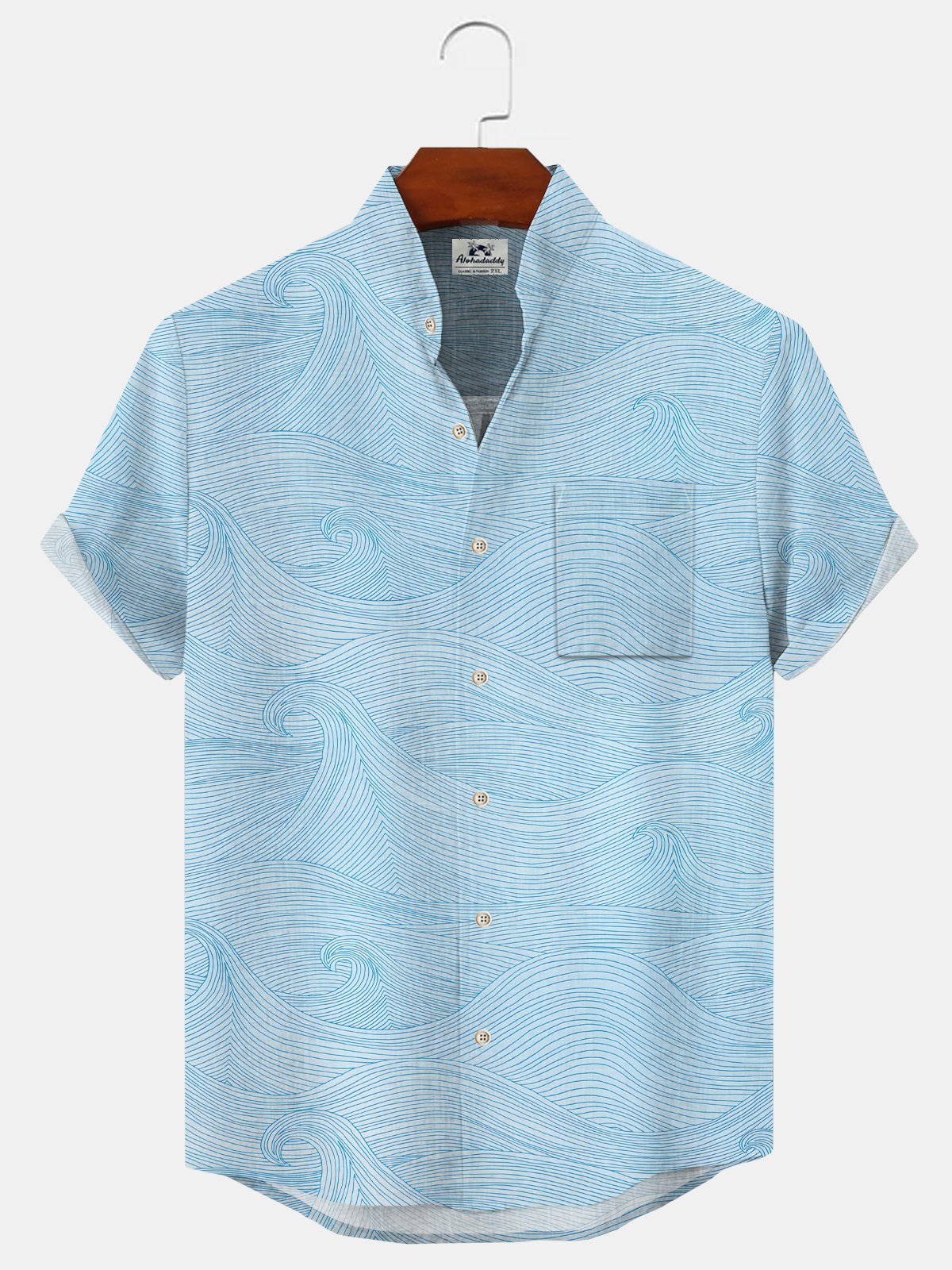 Alohadaddy Geometric Stripes Wave Button Pocket Casual Short Sleeve Shirt