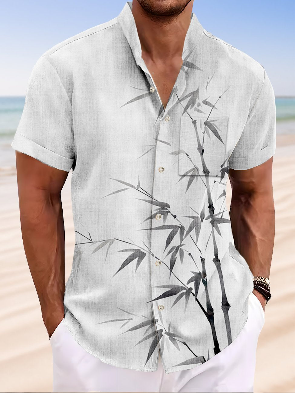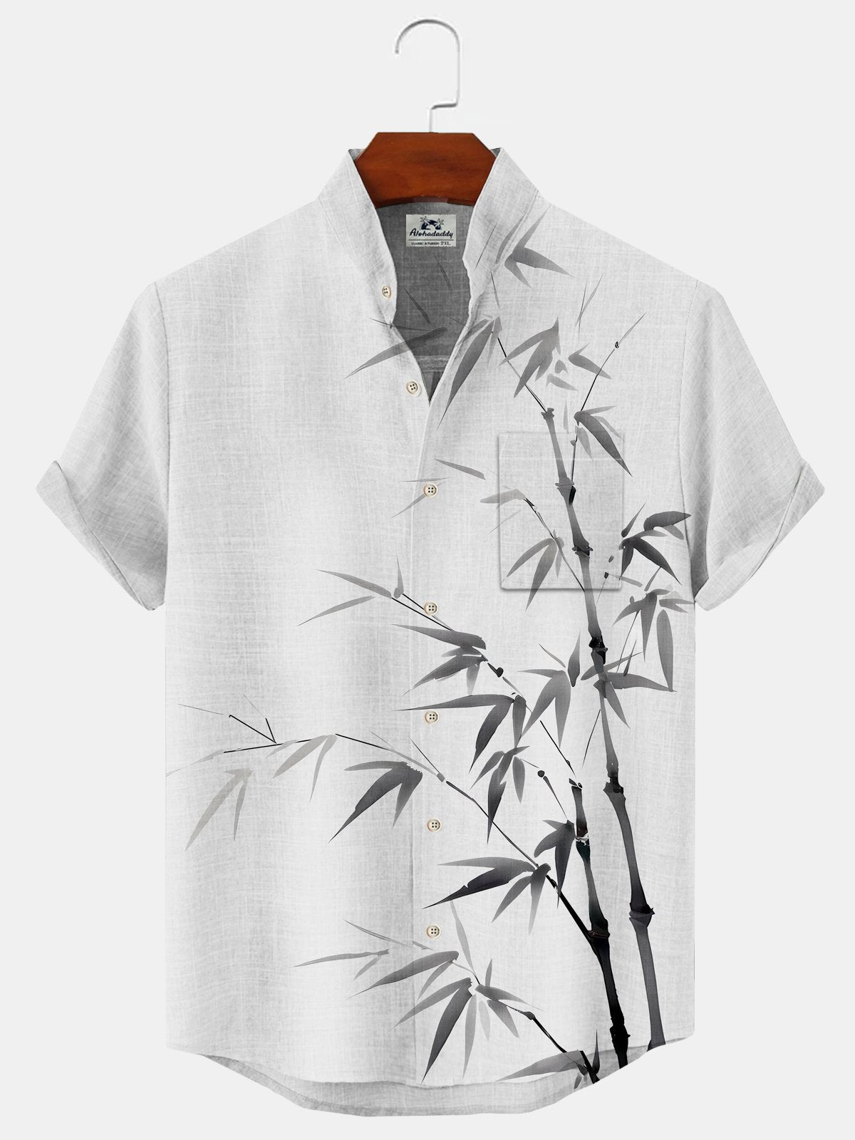 Alohadaddy Plant Bamboo Button Pocket Casual Short Sleeve Stand Collar Shirt