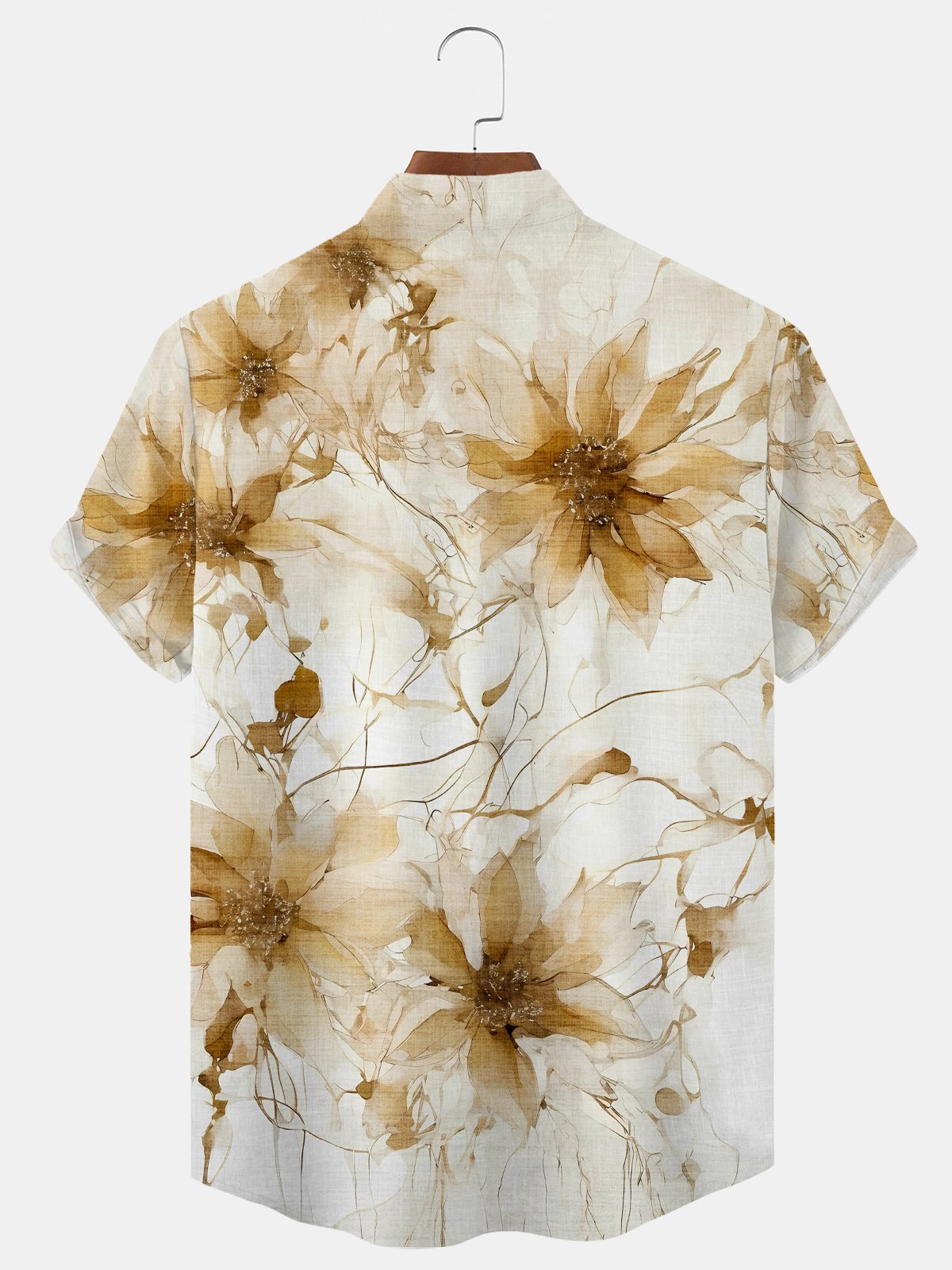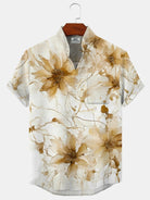 Alohadaddy Plant Flower Button Pocket Casual Short Sleeve Stand Collar Shirt