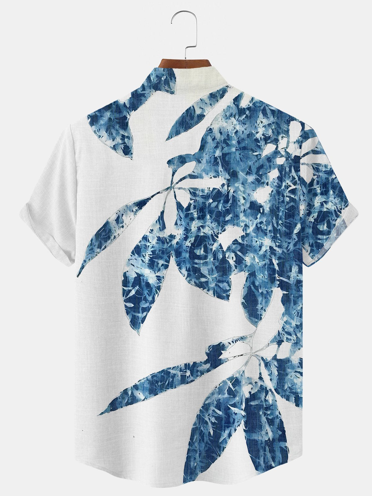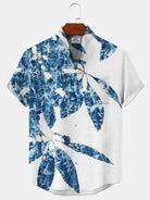 Alohadaddy Plant Leaves Button Pocket Casual Short Sleeve Stand Collar Shirt