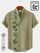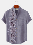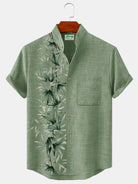 Alohadaddy Pocket Vintage Bamboo Print Beach Men's Hawaiian Big&Tall Stand Collar Shirt