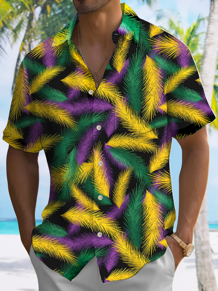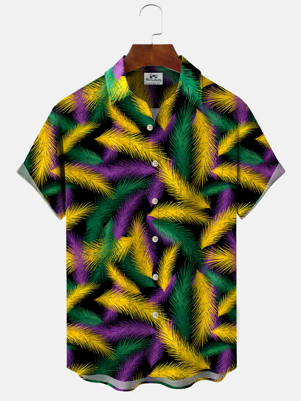 Alohadaddy Contrast Feather Button Pocket Casual Short Sleeve Shirt