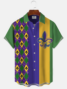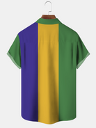 Alohadaddy Geometric Chrome Heart Stripe Button Pocket Casual Short Sleeve Shirt