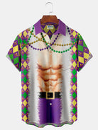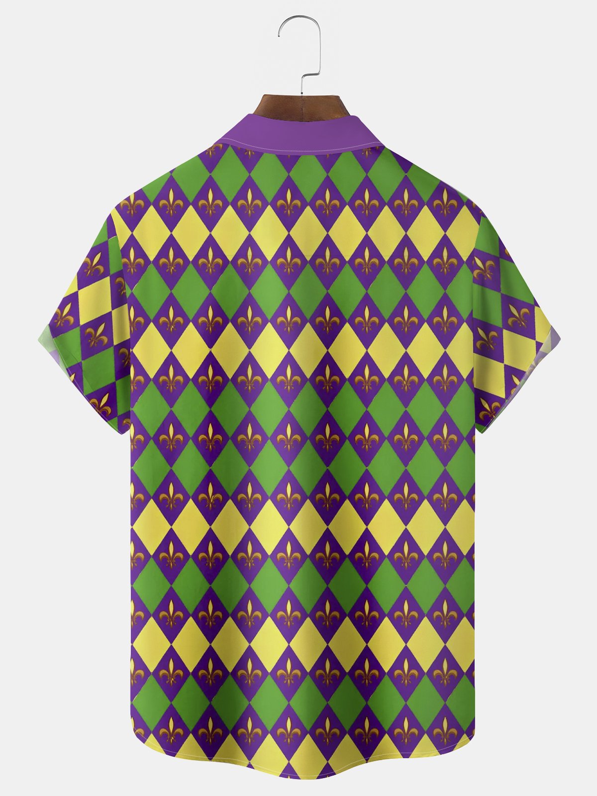 Alohadaddy Mardi Gras Print Men's Button Pocket Short Sleeve Shirt