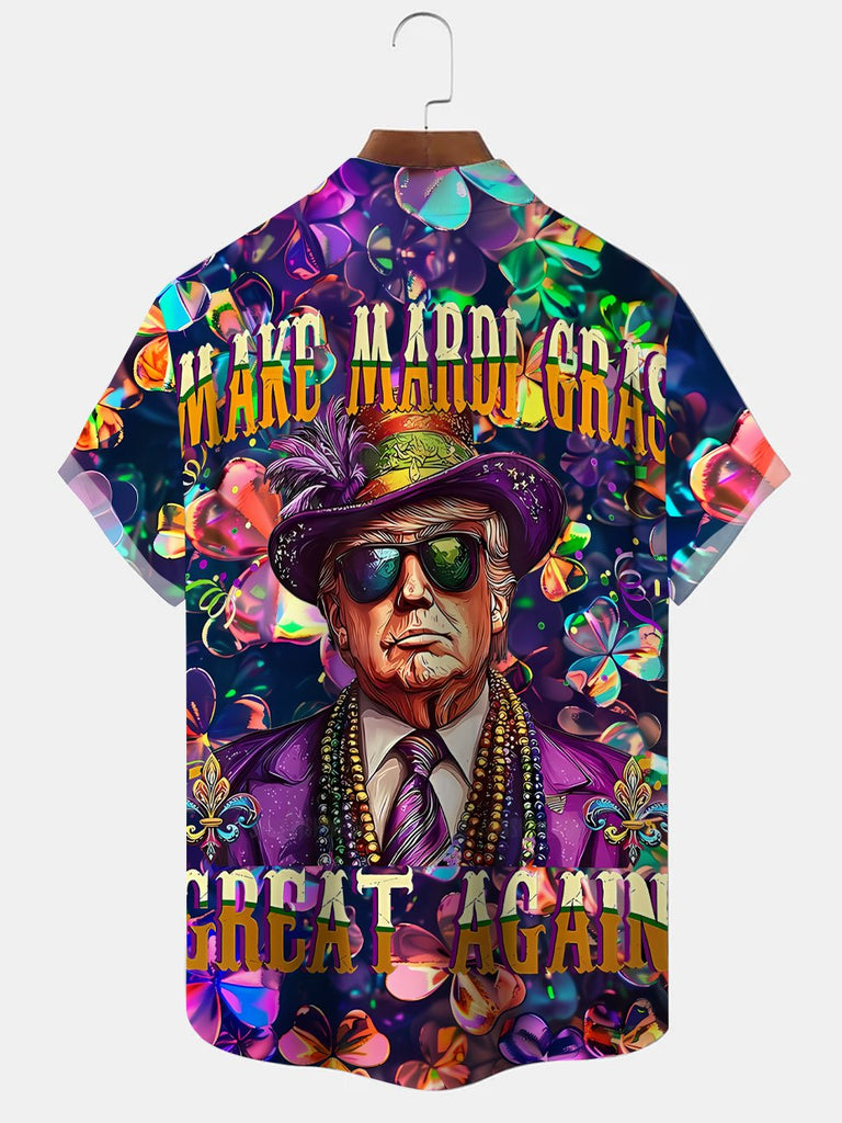 Alohadaddy Mardi Gras Trump Button Pocket Casual Short Sleeve Shirt