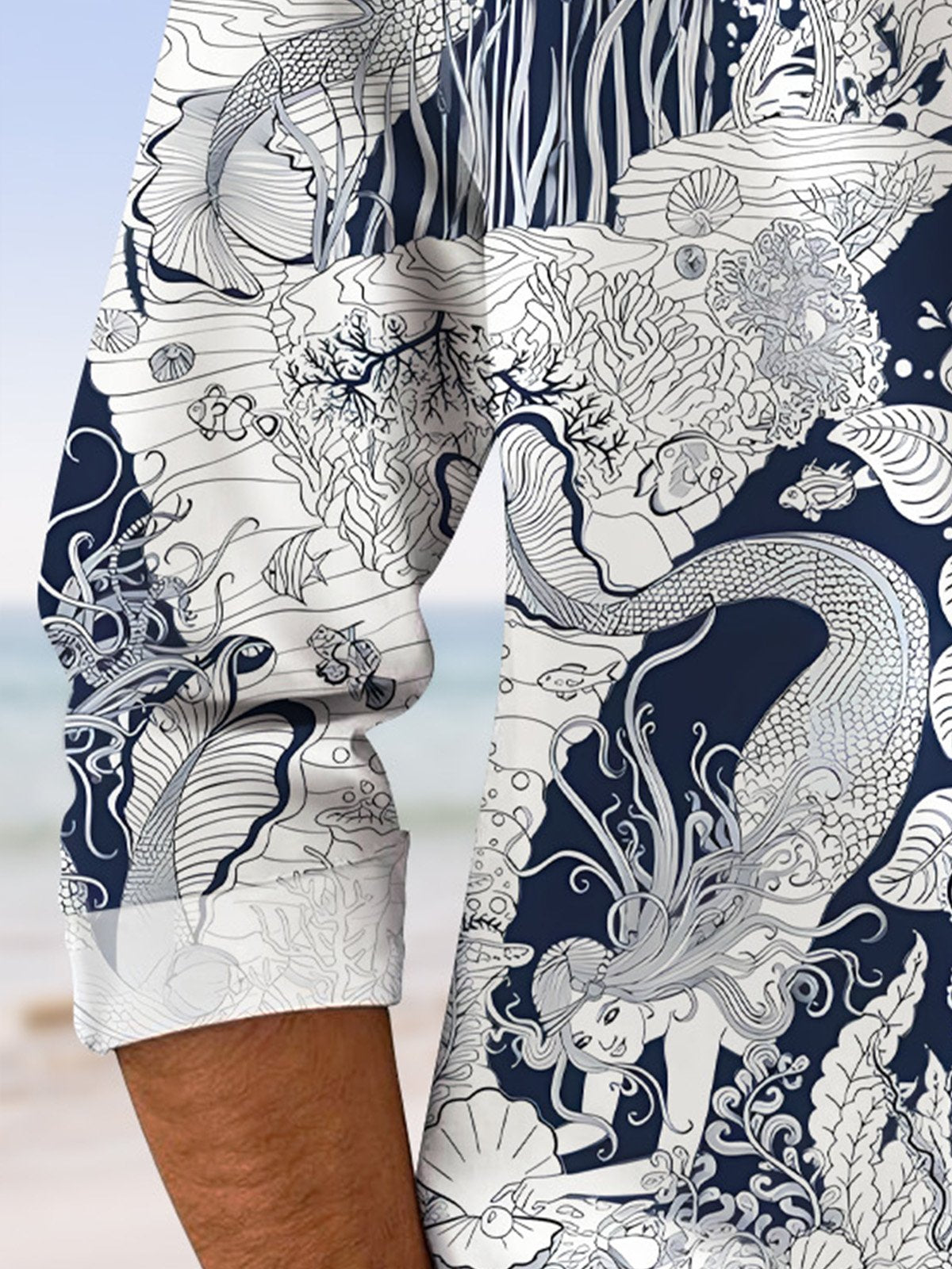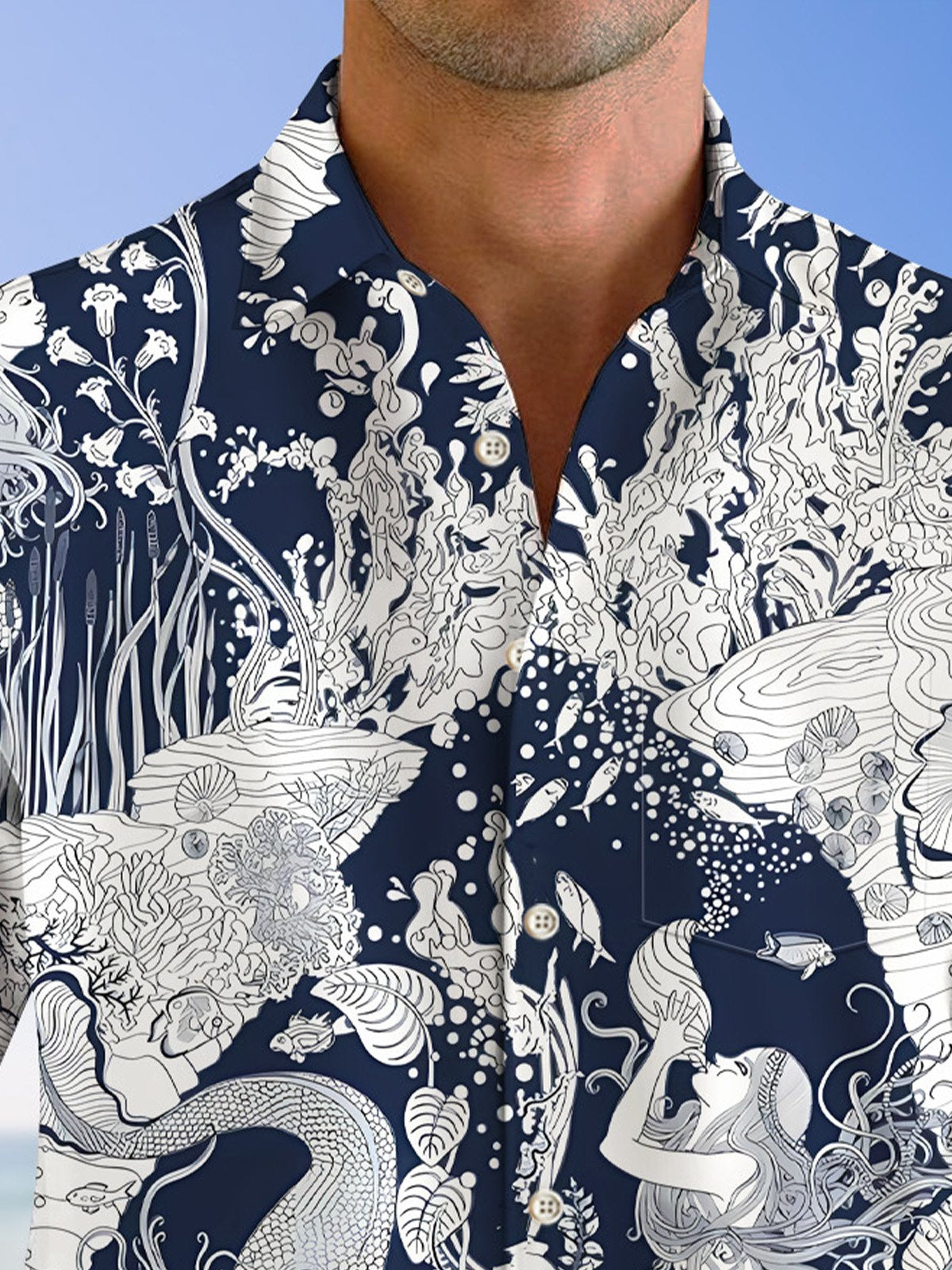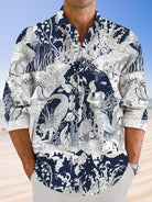 Alohadaddy Ethnic Style Mermaid Line Geometry Button Pocket Casual Long Sleeve Shirt