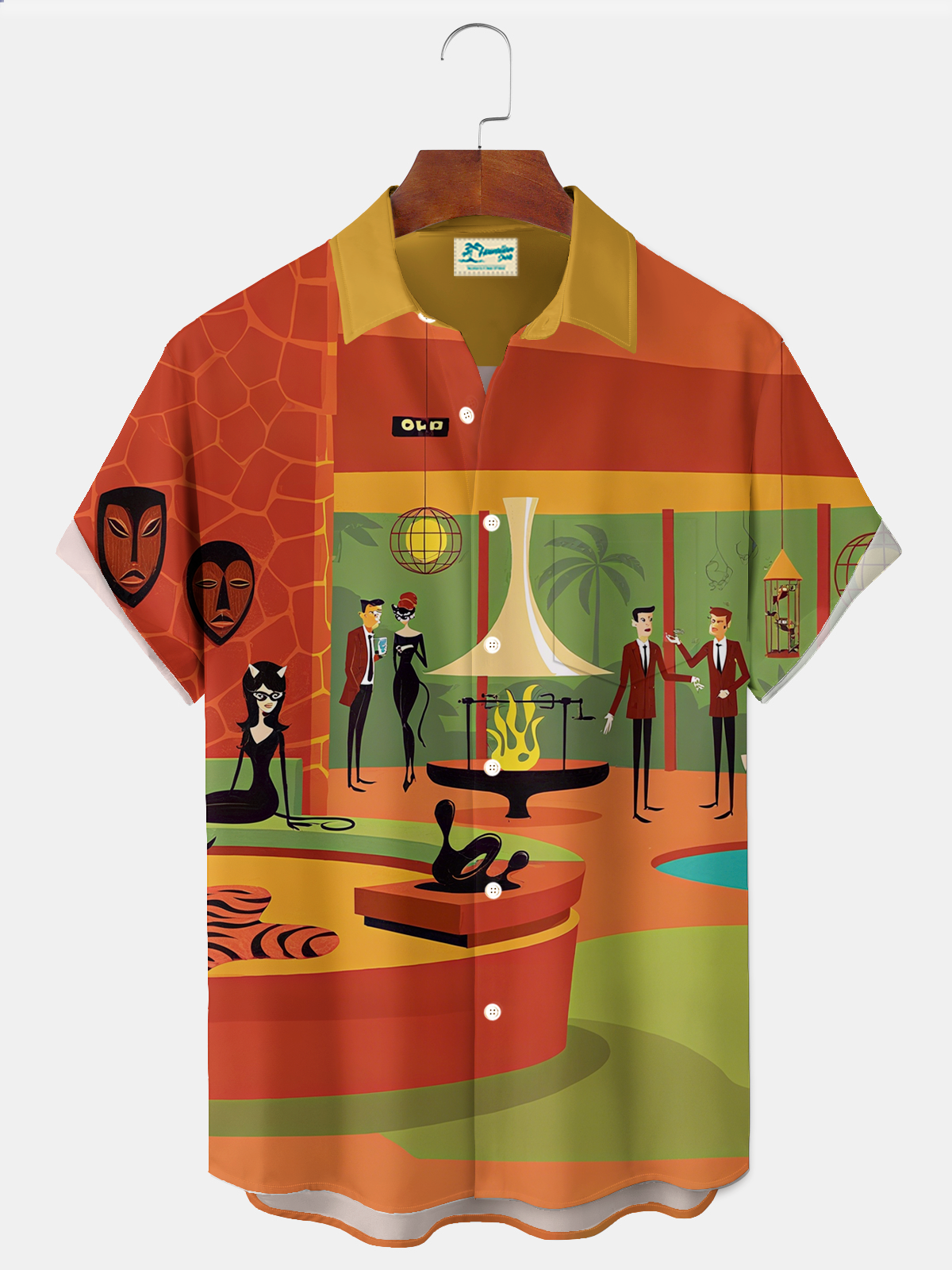 Alohadaddy® Retro 1950s Mid-century Atomic Age Geometric Graphic Print Men's Button Pocket Short Sleeve Shirt Big & Tall