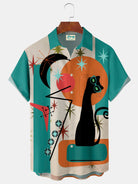 Alohadaddy® Retro Medieval Cat Geometric Print Men's Lapel Pocket Short Sleeve Shirt Big & Tall