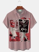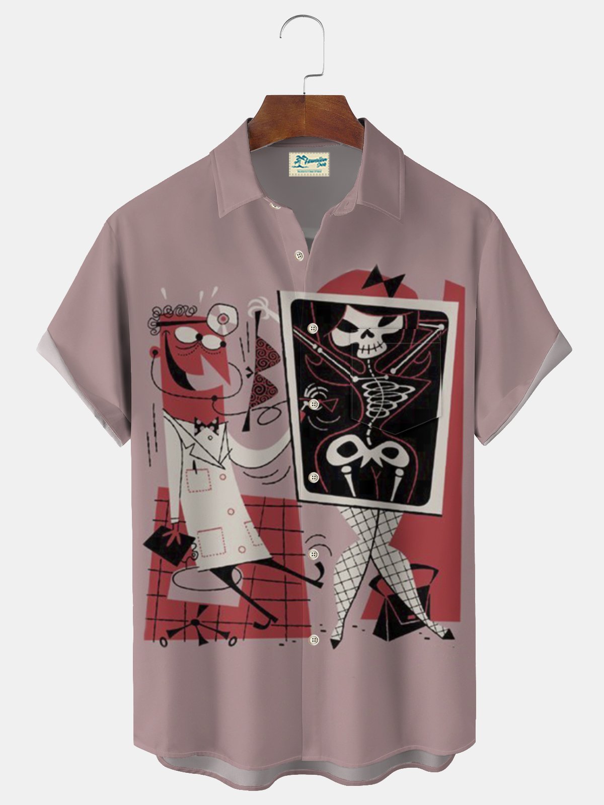 Alohadaddy® Retro Medieval Fun Doctor Geometric Print Men's Lapel Pocket Short Sleeve Shirt Big & Tall