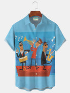 Alohadaddy® Retro Medieval Instruments Music Geometric Print Men's Lapel Pocket Short Sleeve Shirt Big & Tall
