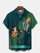 Alohadaddy® Retro Medieval Music Concert Geometric Print Men's Lapel Pocket Short Sleeve Shirt Big & Tall