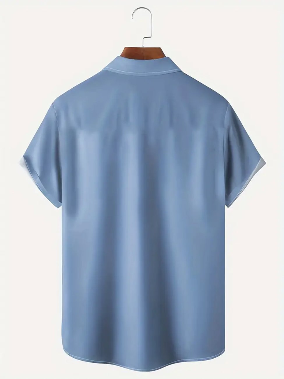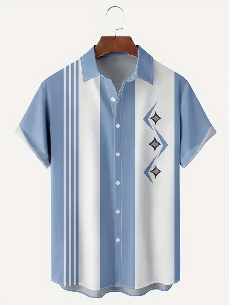 Alohadaddy Lightblue Abstract Geometric Bowling Cotton-Blend Casual Plus Size Shirts