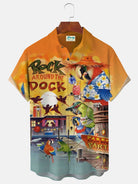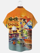 Alohadaddy Beach Holiday Orange Men's Hawaiian Shirts Five O'Clock Parrot Cartoon Stretch Plus Size Aloha Camp Pocket Shirts