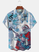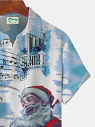 Alohadaddy Musical Note Santa Print Men's Hawaiian Oversized Shirt with Pockets