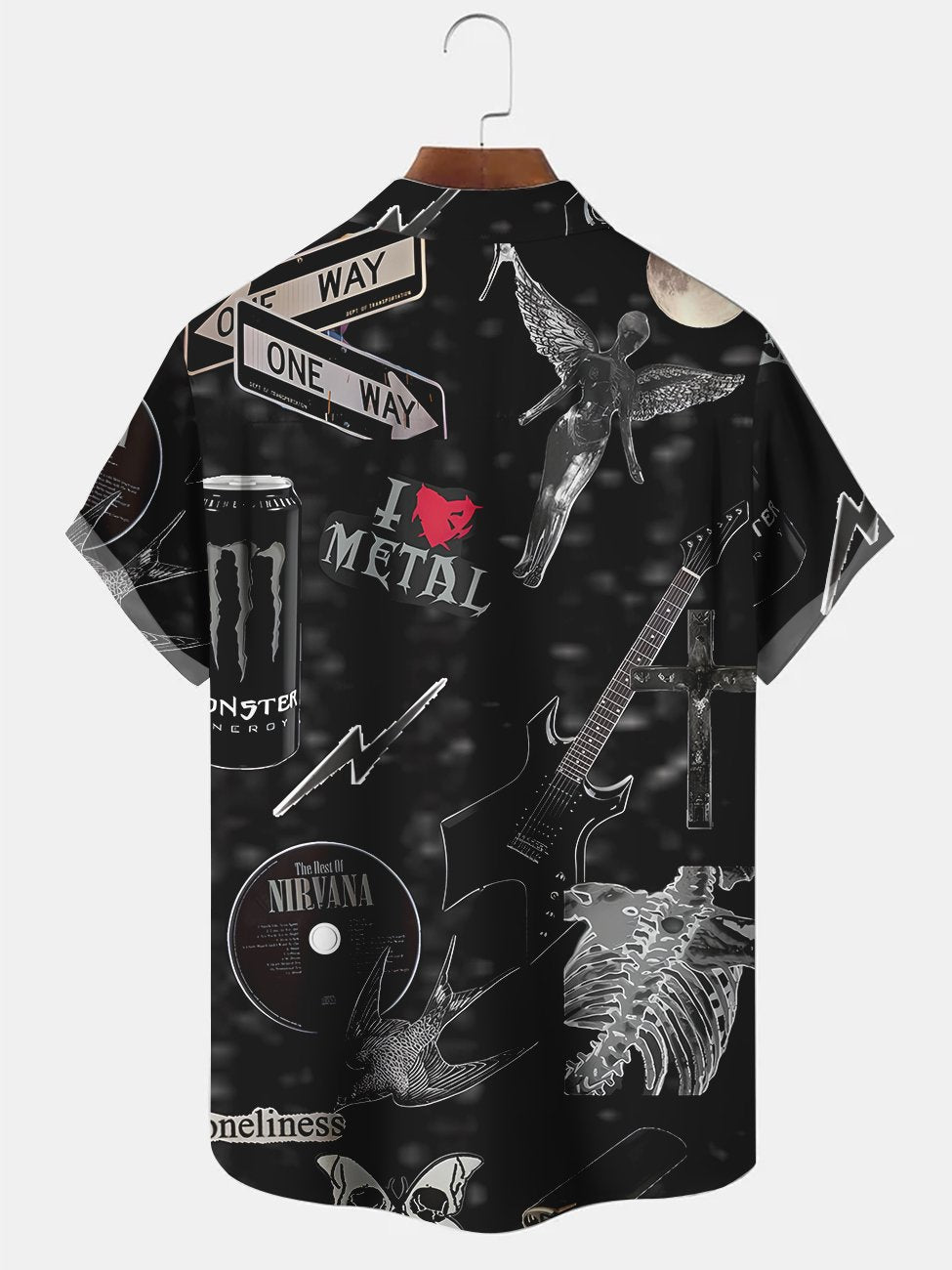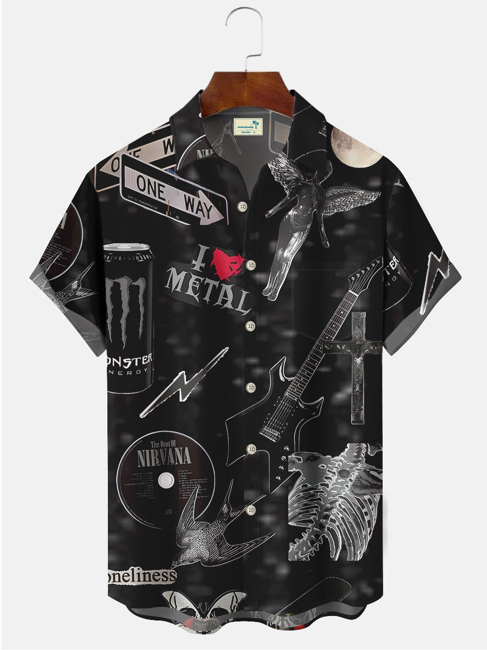 Alohadaddy Rock Music Instrument Printed Casual Plus Size Shirts