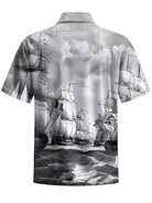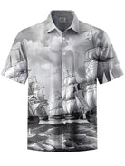 Alohadaddy® Casual Sailing Sailboat Printed Chest Pocket Men's Short Sleeve Shirt Big & Tall