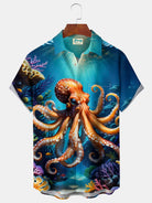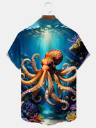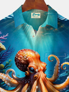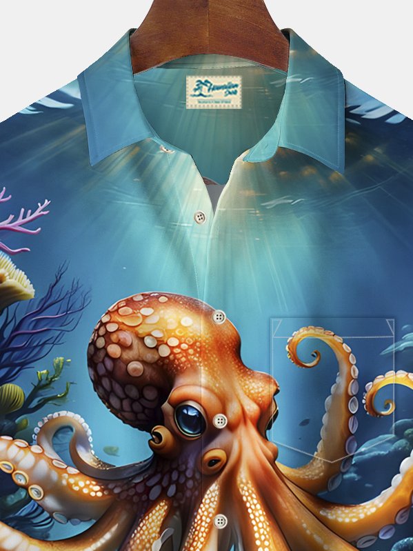 Alohadaddy Beach Vacation Men's Hawaiian Shirt Octopus Print Pocket Camping Shirt Big Tall