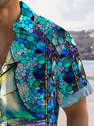 Alohadaddy Hawaiian Sailing Art Oil Painting Print Men's Button Pocket Short Sleeve Shirt