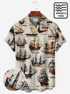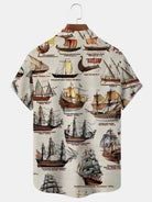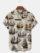 Alohadaddy Vintage Mid-Century Nautical Khaki Men's Hawaiian Shirts Sailing Poster Wrinkle Free Seersucker Easy Care Pocket Camp Shirts