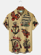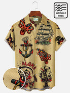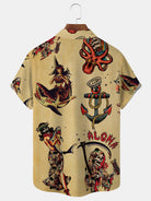 Alohadaddy Vintage Nautical Khaki Men's Hawaiian Shirts Skull Pinupgirl Wrinkle Free Seersucker Easy Care Aloha Pocket Camp Shirts