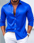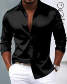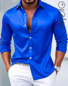 Alohadaddy® Basic Satin Satin Silk Printed Men's Button Pocket Satin Long-Sleeve Dress Shirt Big & Tall