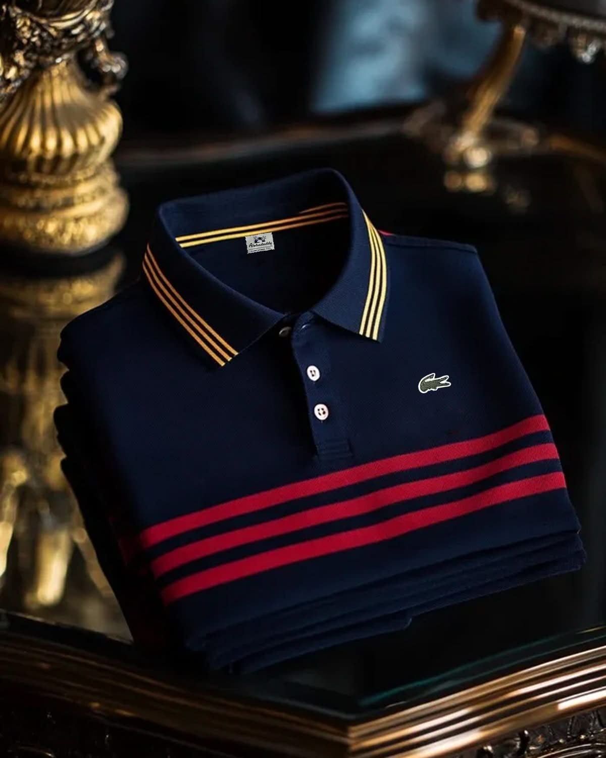 Alohadaddy® Business Striped Logo Print Art Stretch Button Men's Short Sleeve Polo Shirt Big & Tall