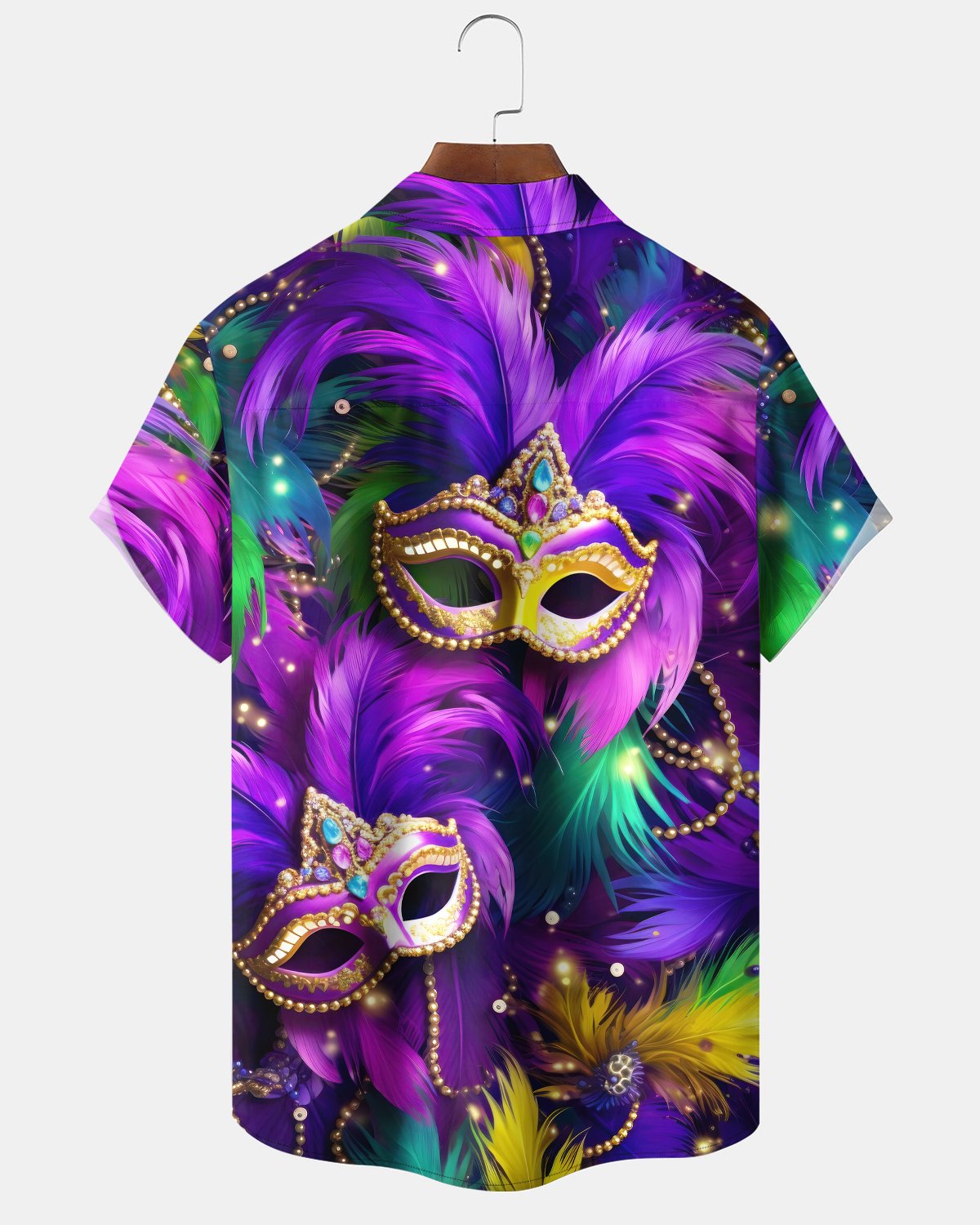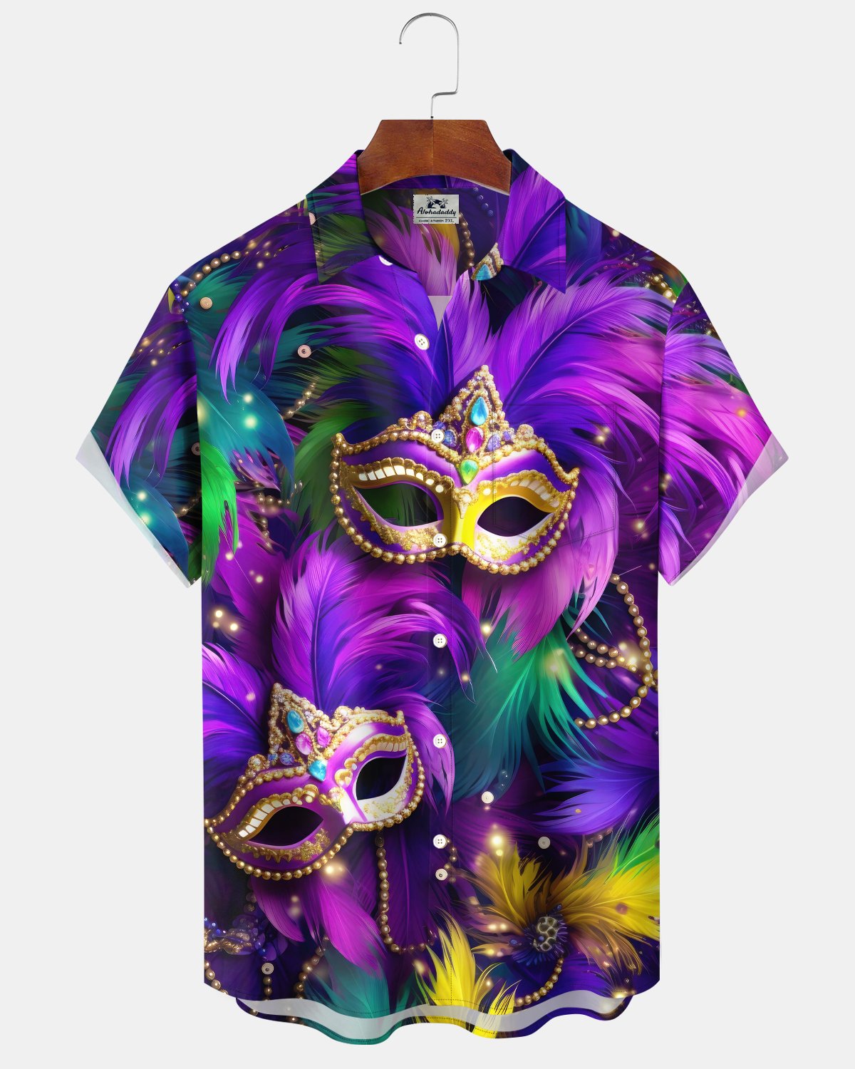 Alohadaddy® Carnival Mask Holiday Retro Party Short-Sleeve Men's Shirt
