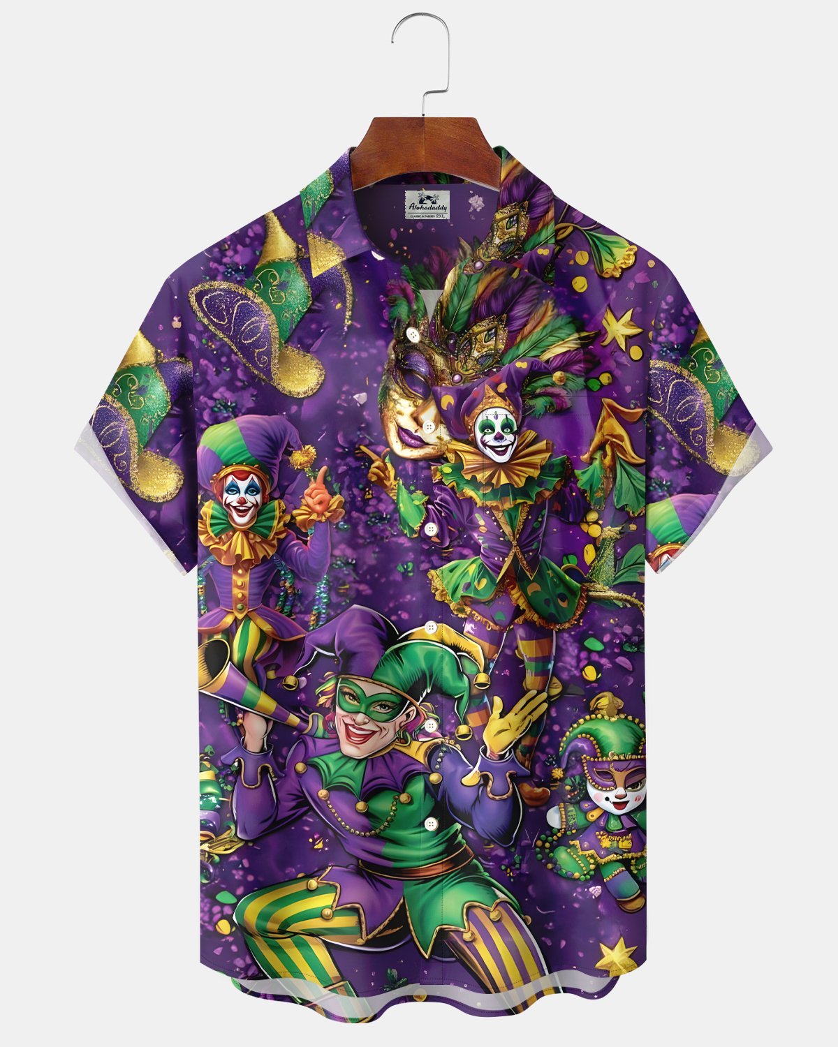 Alohadaddy® Carnival Mask Retro Clown Music Party Short-Sleeved Men's Shirt