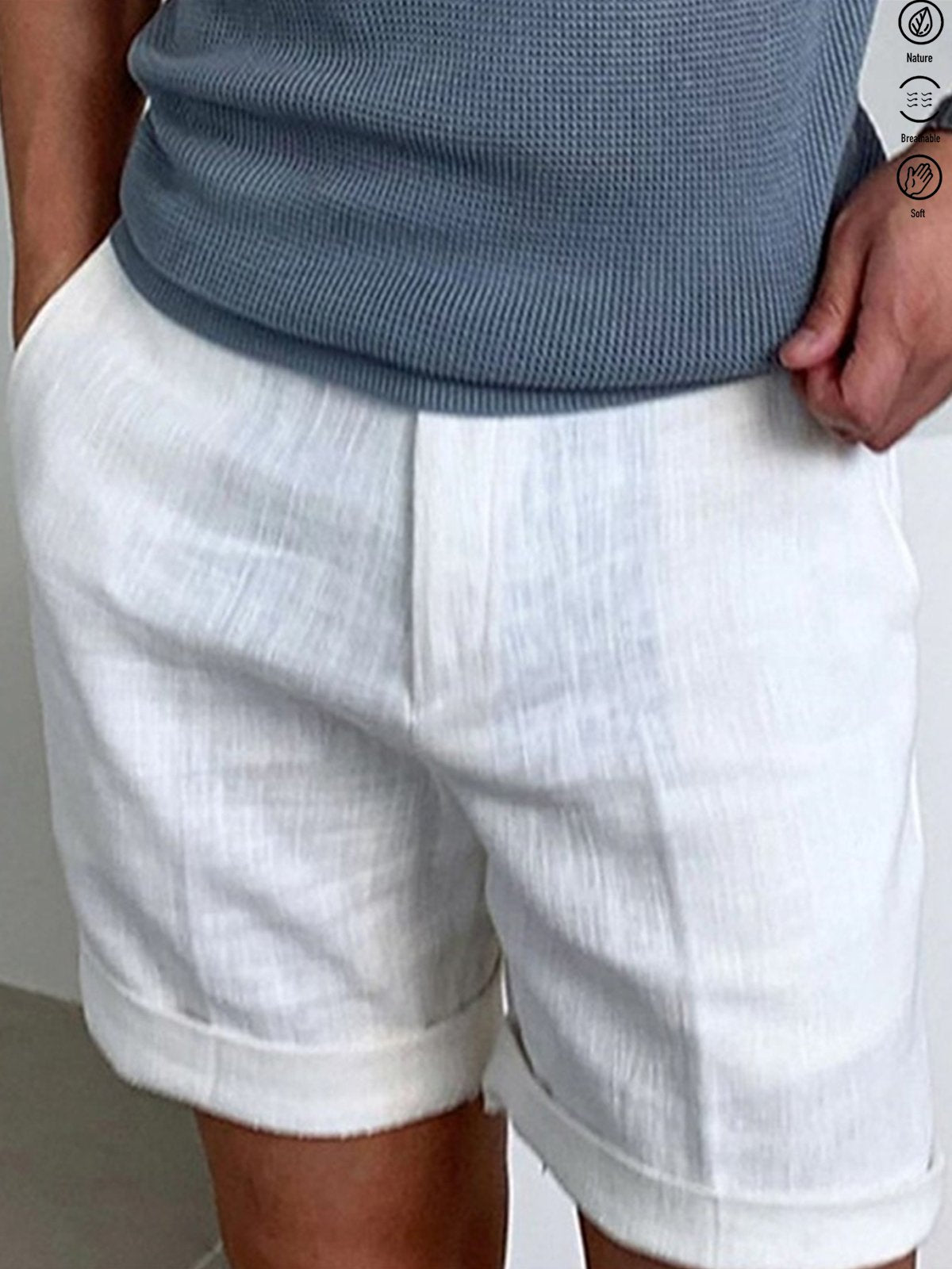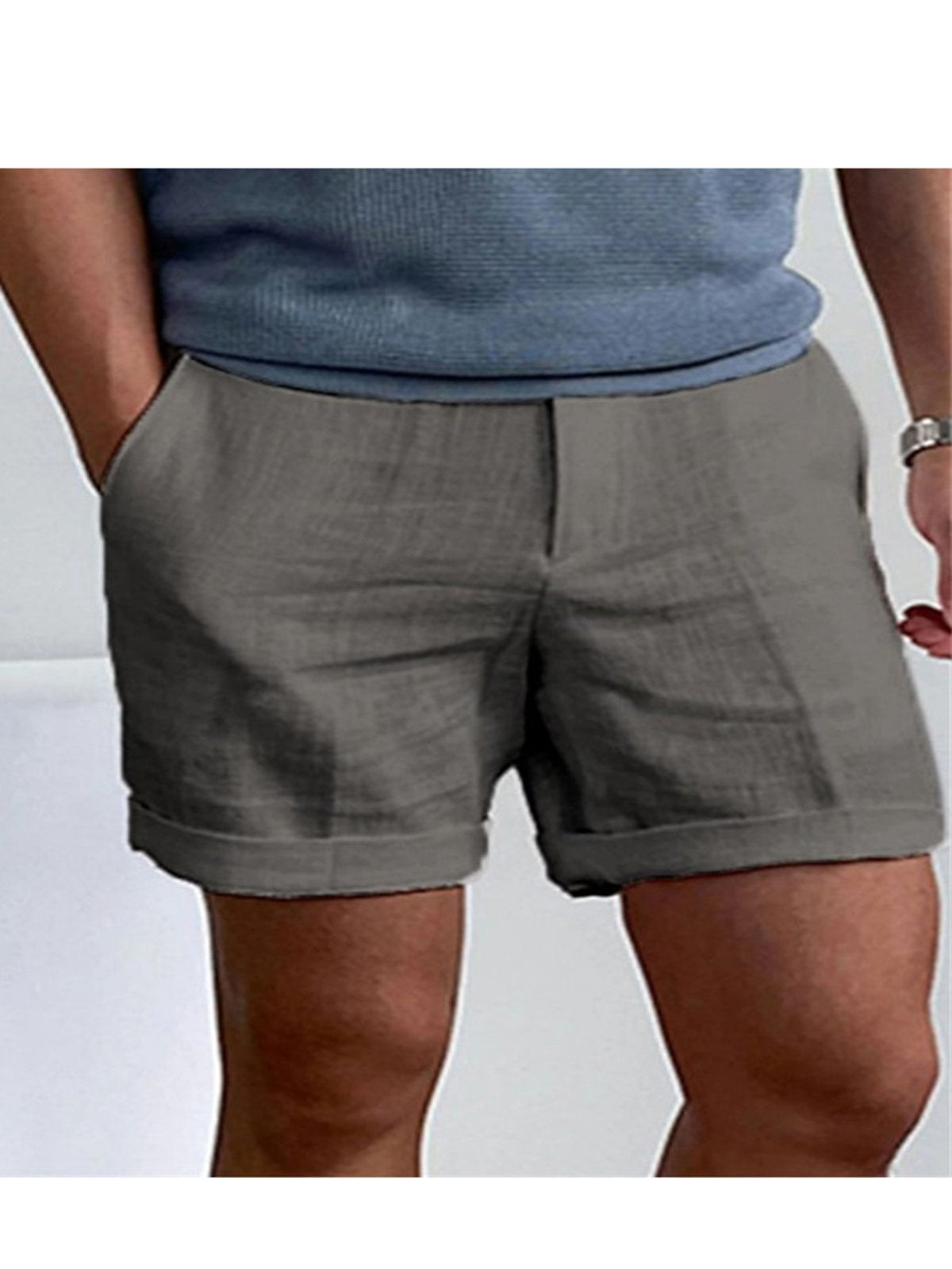 Alohadaddy® Casual Basics Linen Solid Color Slant Pockets Moisture-wicking and Breathable Daily Shorts