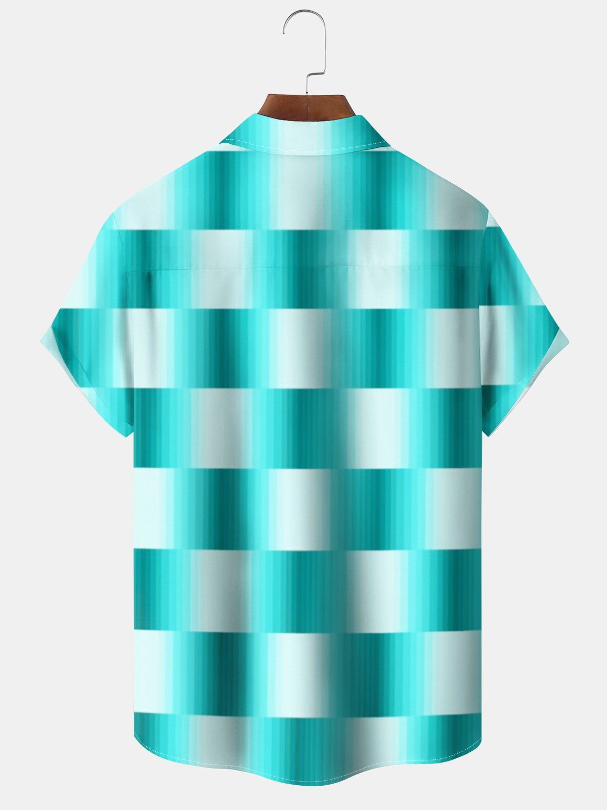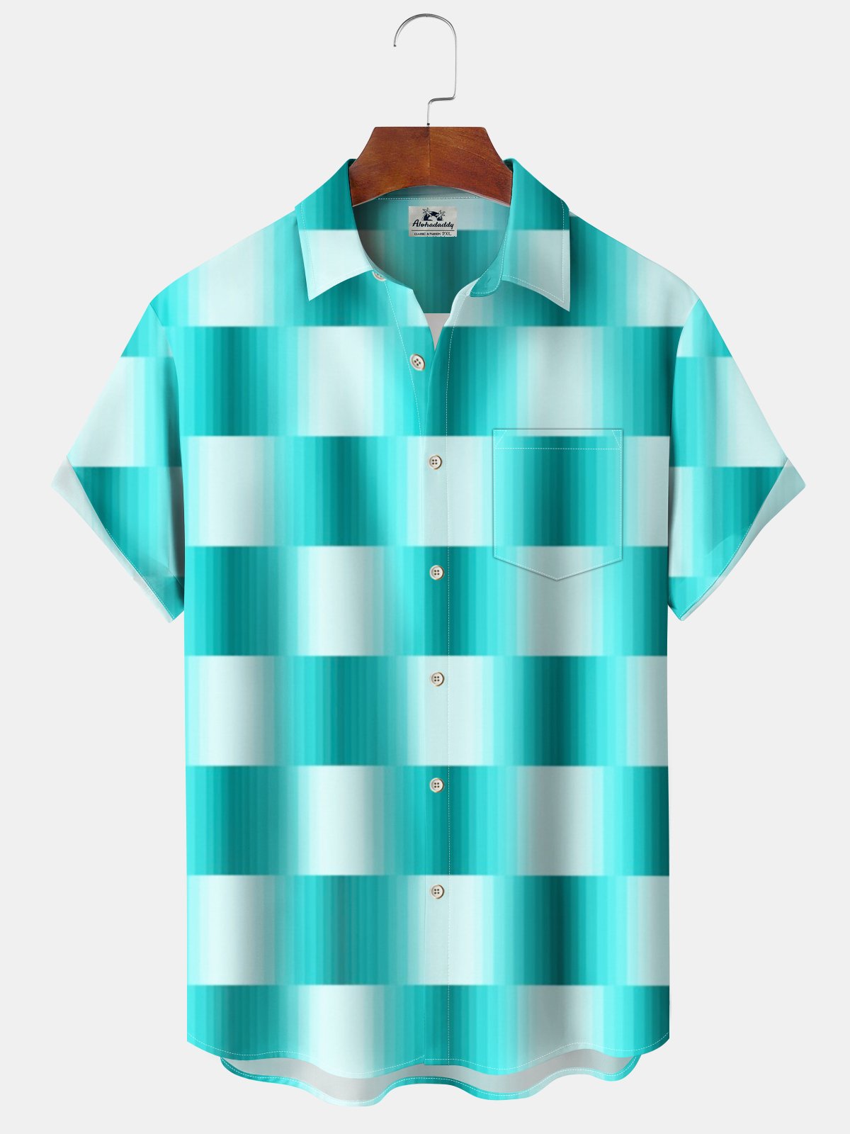Alohadaddy® Casual Geometric Gradient Print Pocket Stretch Men's Short Sleeve Shirt Big & Tall