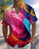 Alohadaddy® Casual Geometric Print Art Button Pocket Cardigan Men's Short Sleeve Shirt & Tall