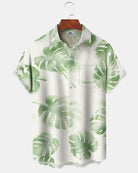 Alohadaddy® Casual Hawaiian Palm Leaf Print Artistic Button Pocket Cardigan Men's Short Sleeve Shirt Big & Tall