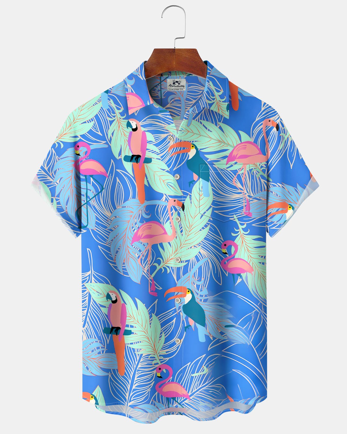 Alohadaddy® Casual Hawaiian Parrot Print Art Button Pocket Cardigan Men's Short Sleeve Shirt Big & Tall