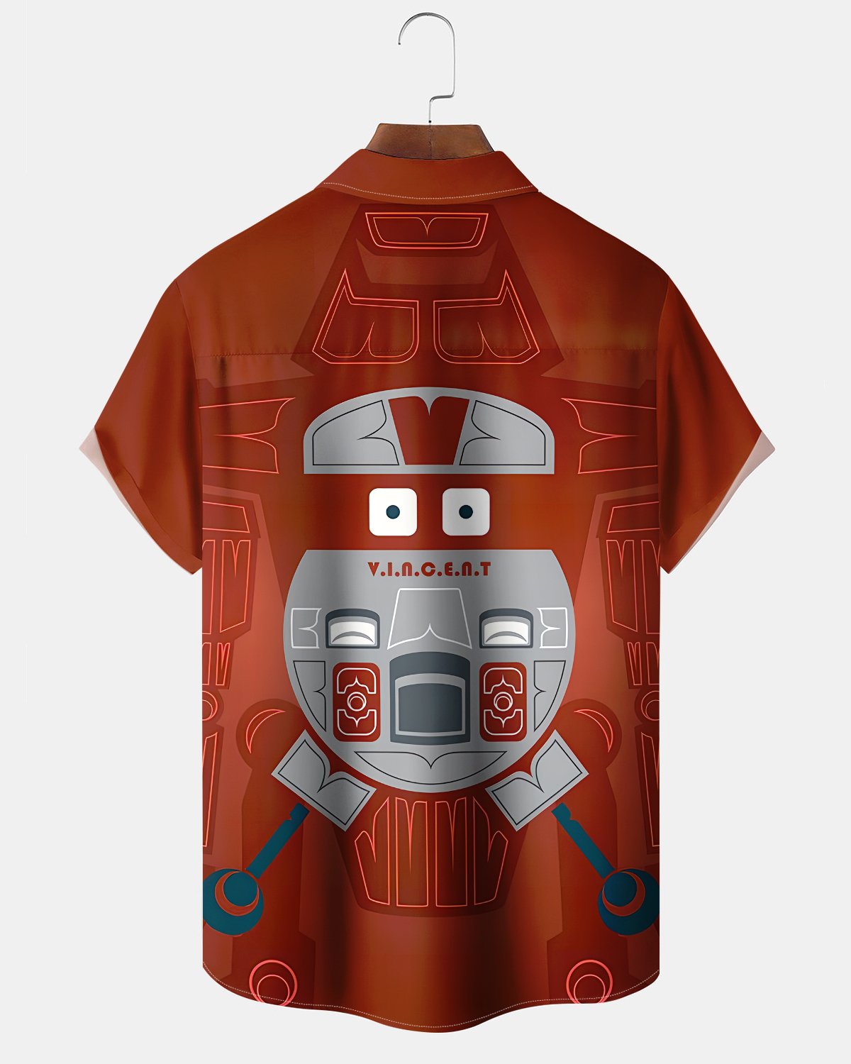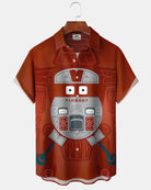 Alohadaddy® Casual Robot Cartoon Print Art Cardigan Men's Short Sleeve Shirt Big & Tall