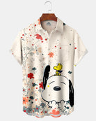 Alohadaddy® Casual Snoopy Print Art Button Pocket Cardigan Men's Short Sleeve Shirt Big & Tall