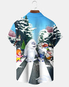 Alohadaddy® Christmas Fun Cartoon Snowman Crossing the Street Pocket Short-Sleeve Shirt