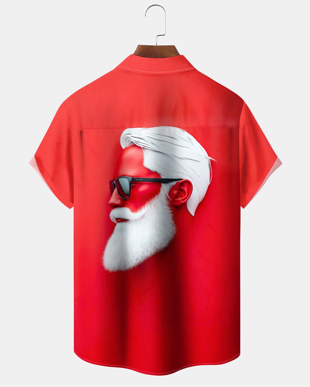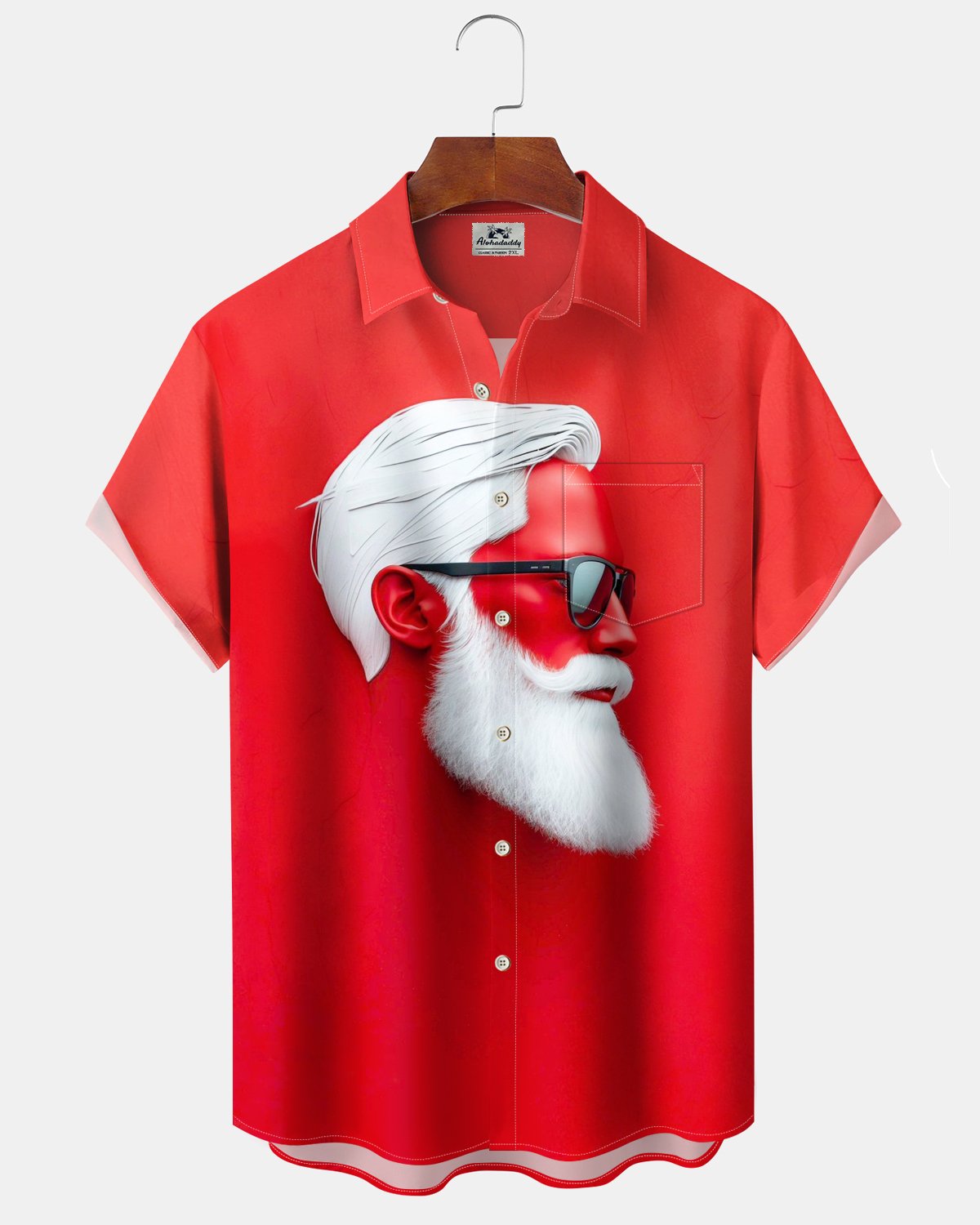 Alohadaddy® Christmas Portrait Red Printed Pocket Button Men's Short Sleeve Shirt Big & Tall
