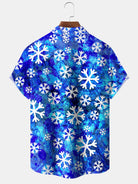 Alohadaddy® Christmas Snowflake Print Pocket Elastic Button Men's Short Sleeve Shirt Big & Tall