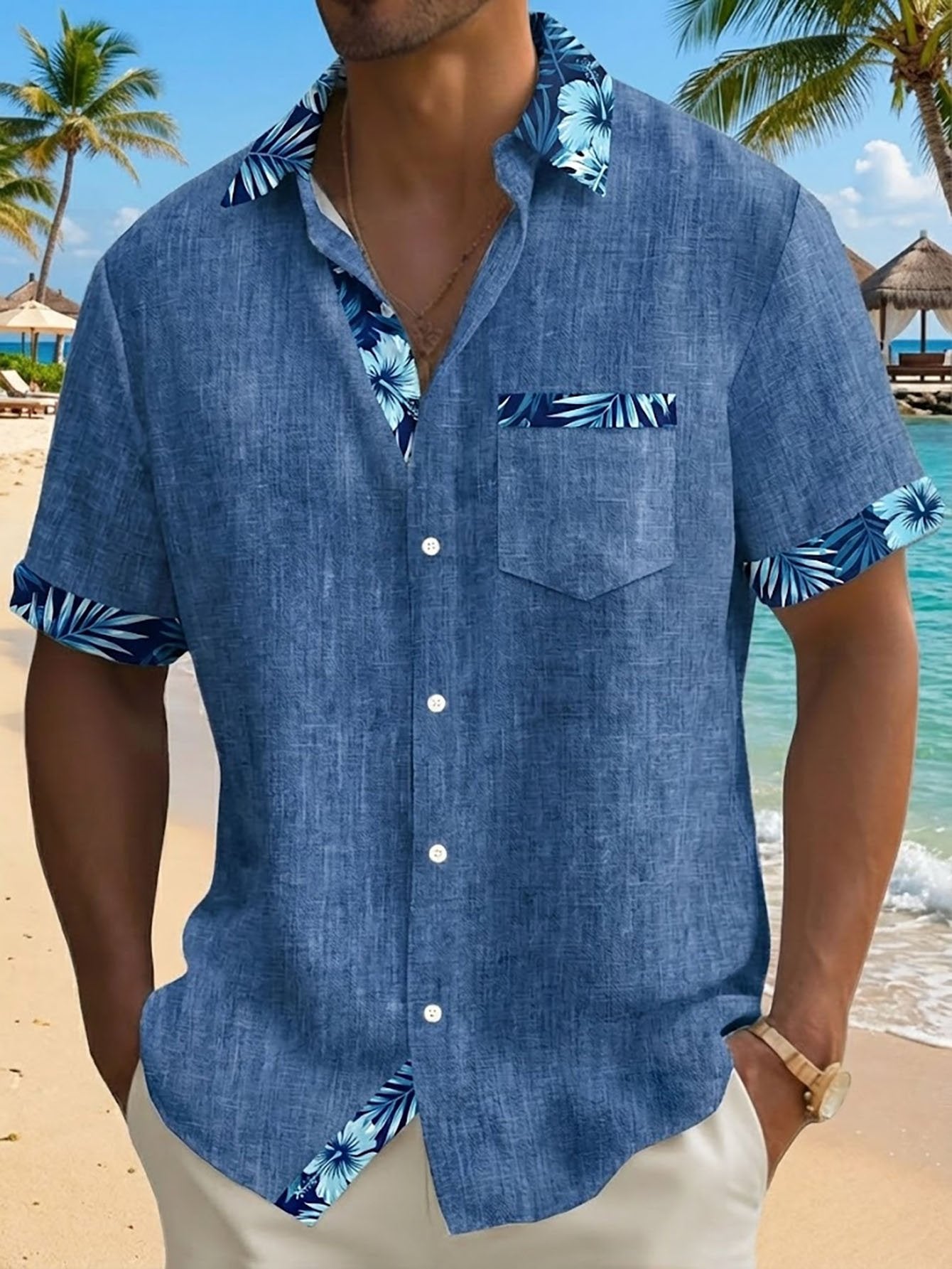 Alohadaddy® Hawaii Basic Textured Floral Print Men's Button-Down Short-Sleeve Shirt Big & Tall