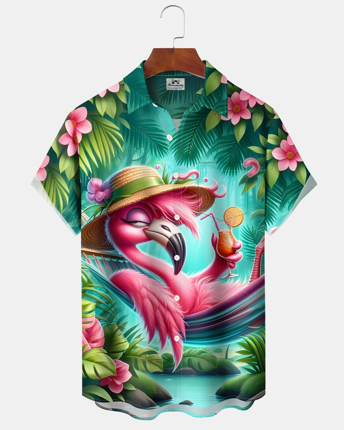 Alohadaddy® Hawaiian Cartoon Funny Flamingo Floral Shirt