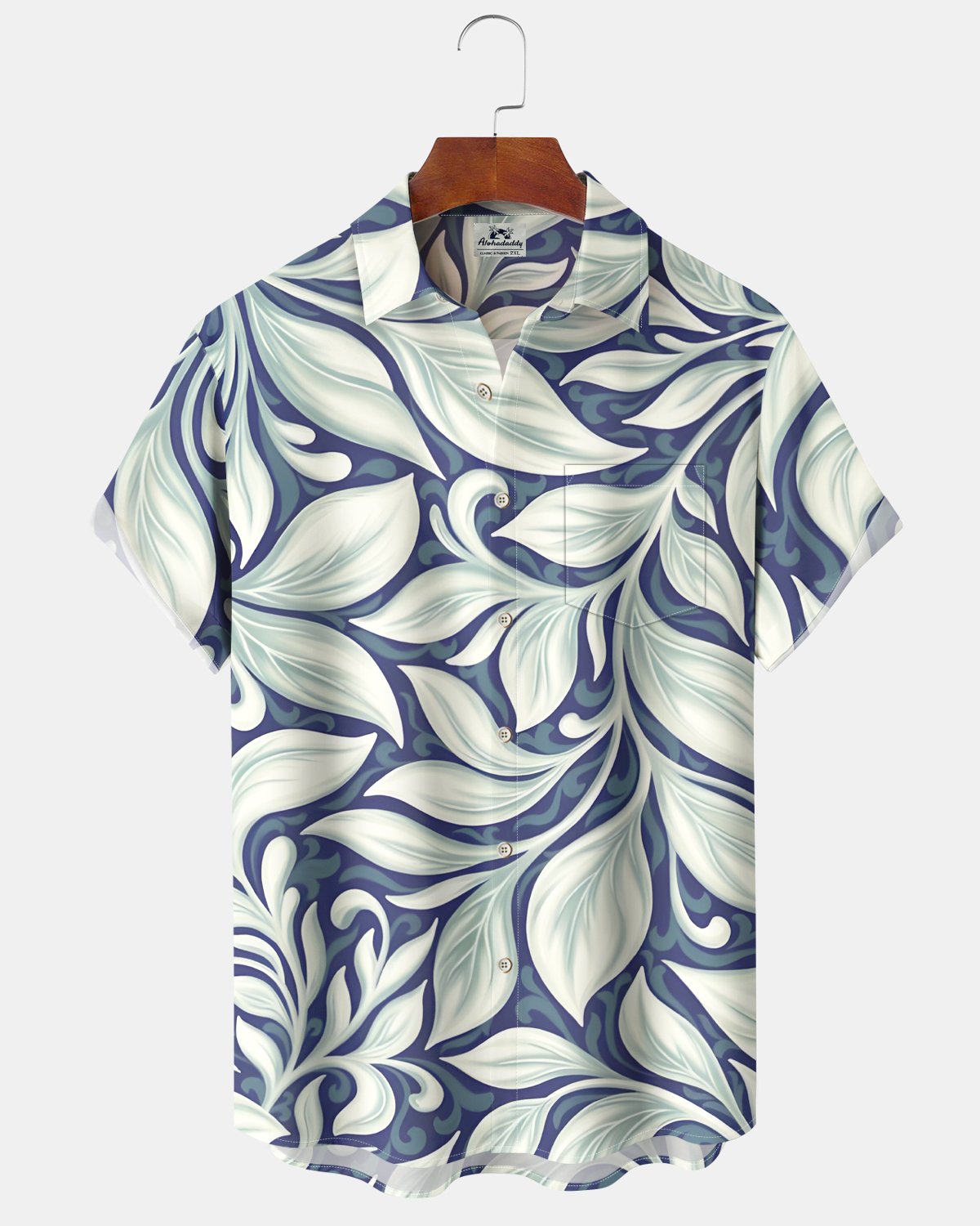 Alohadaddy® Hawaiian Floral Abstract Tropical Leaf Men's Short-Sleeve Shirt