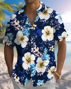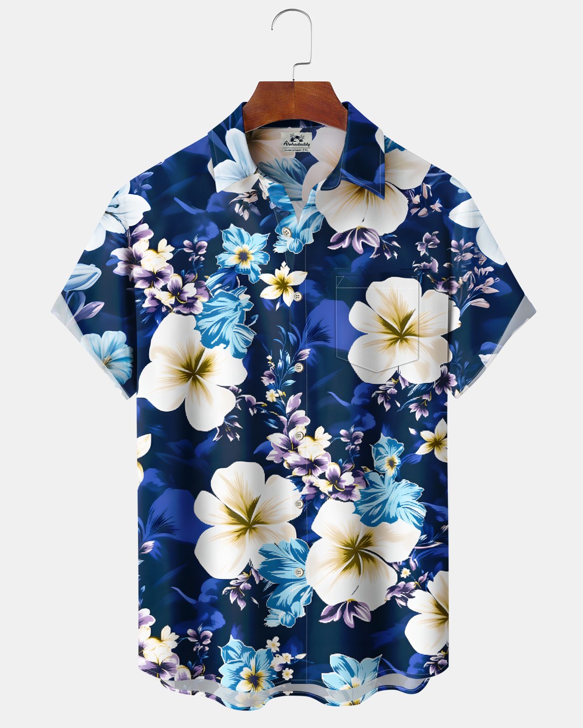 Alohadaddy® Hawaiian Floral Print Art Button Pocket Cardigan Men's Short Sleeve Shirt Big & Tall