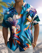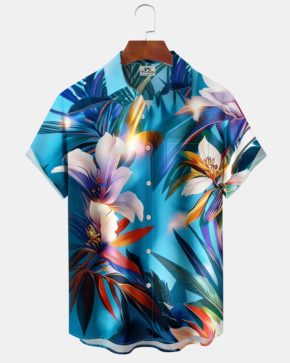 Alohadaddy® Hawaiian Floral Print Art Button Pocket Cardigan Men's Short Sleeve Shirt Big & Tall