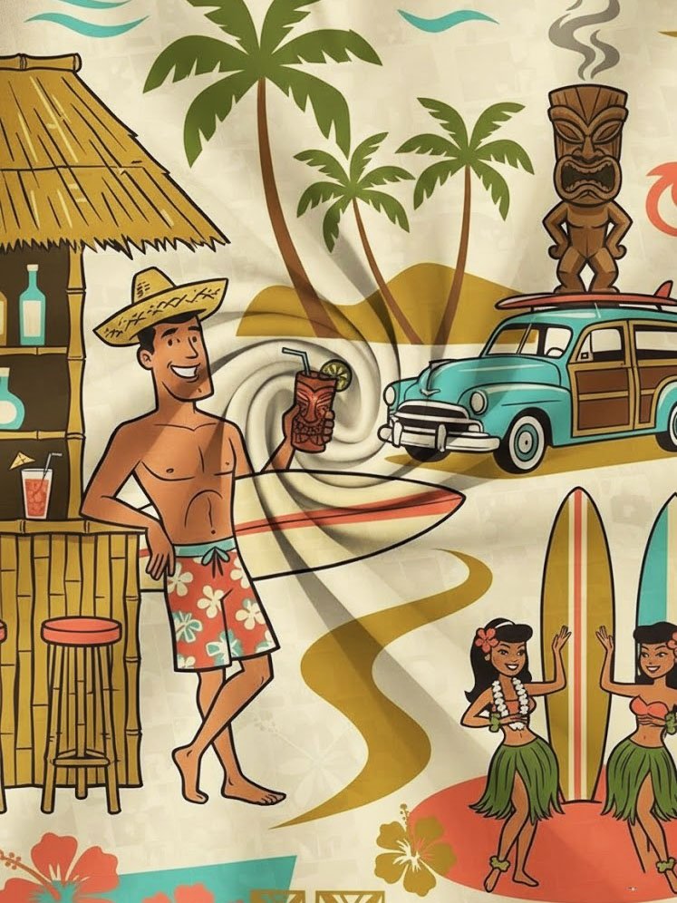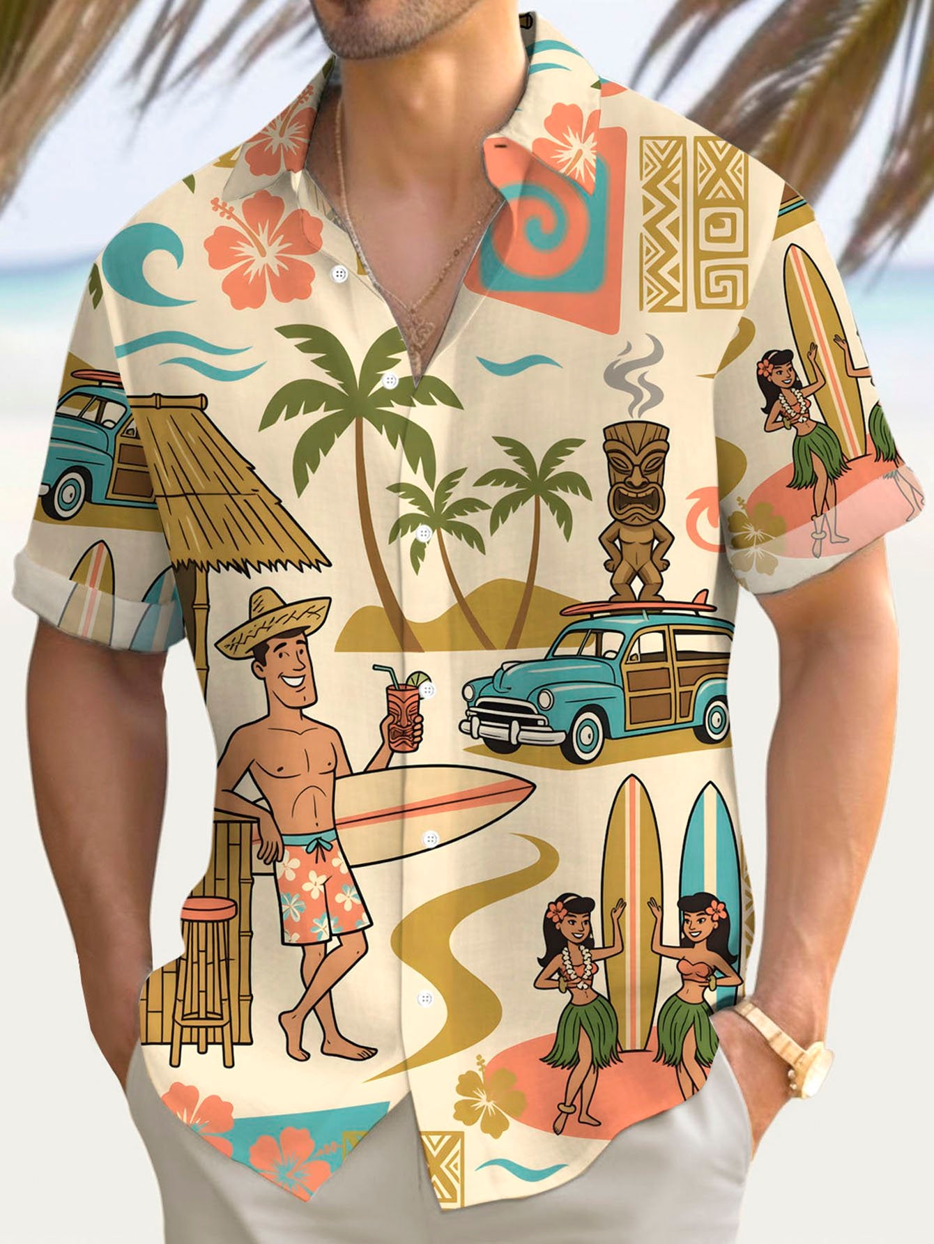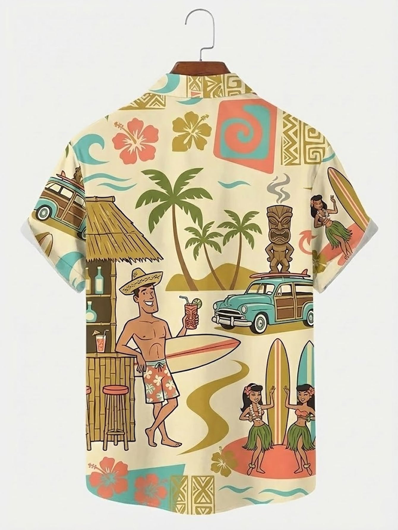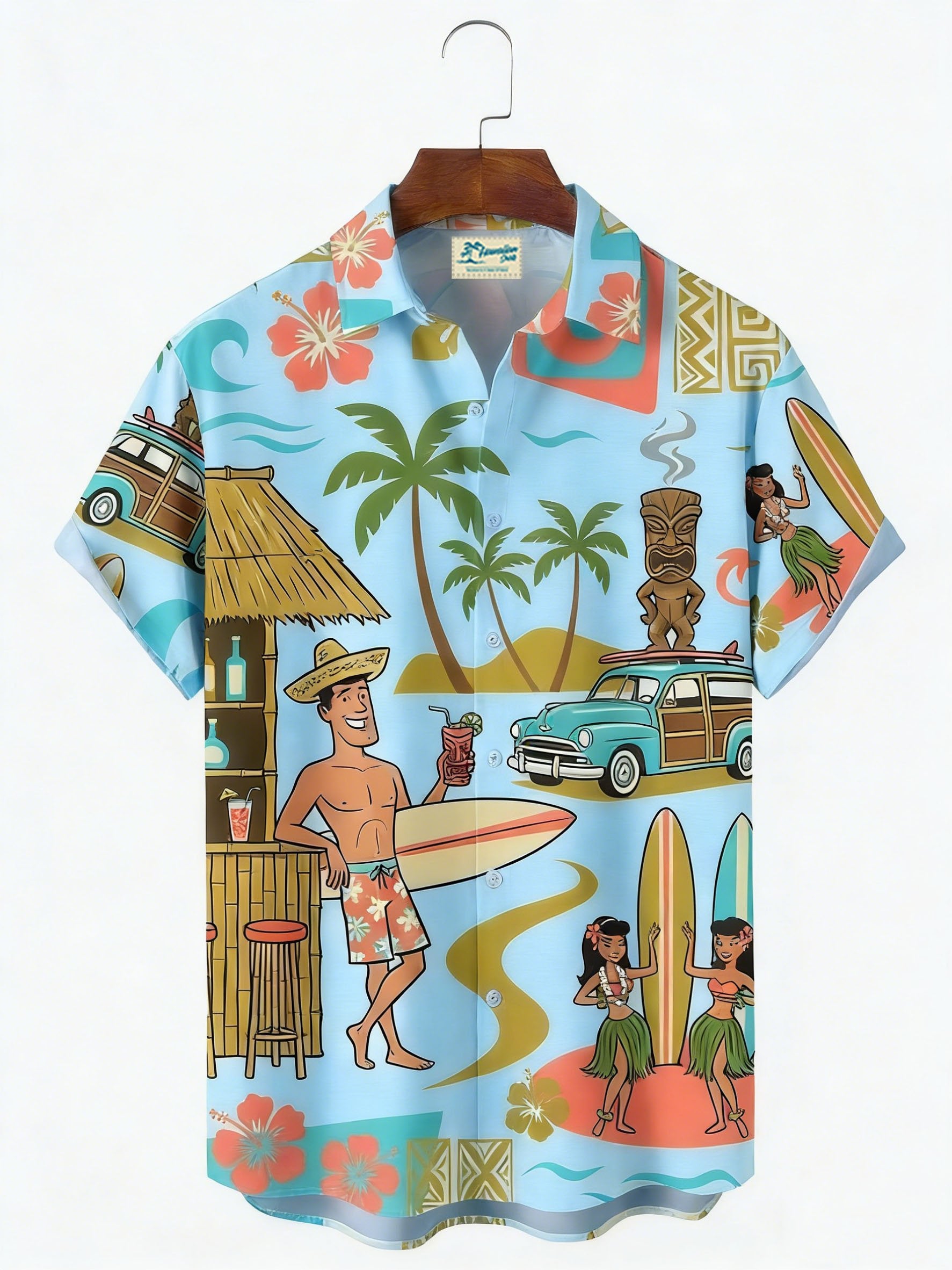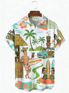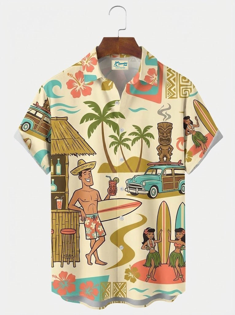 Alohadaddy® Hawaiian Medieval Geometric Cartoon Print Men's Button-Down Short-Sleeved Shirt Big & Tall