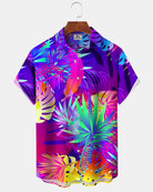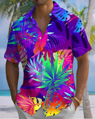 Alohadaddy® Hawaiian Palm Leaf Print Art Button Pocket Cardigan Men's Short Sleeve Shirt Big & Tall